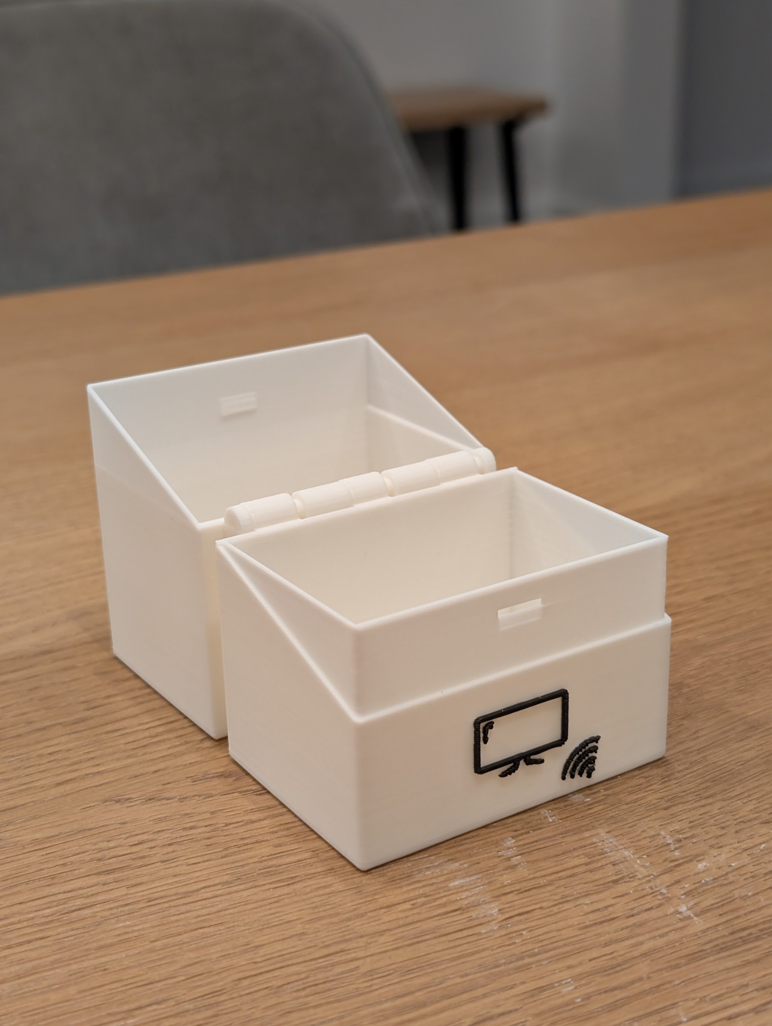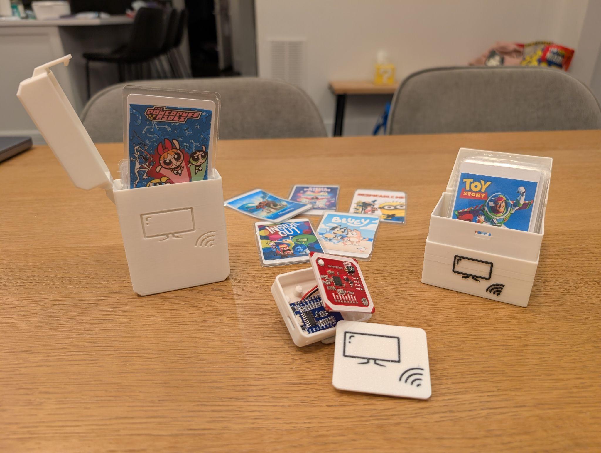 The scanner runs on ESPHome - a framework that makes creating custom smart devices surprisingly simple, and connects to my Home Assistant smart home setup. With my kids’ help, we created over 50 cards covering all their favorite shows and movies, and the collection keeps growing. It was such a hit that I built a second scanner for another room in our house. To make the scanner blend in, I designed and 3D-printed a small enclosure that matches the décor of the room while keeping the scanner kid-friendly and accessible.