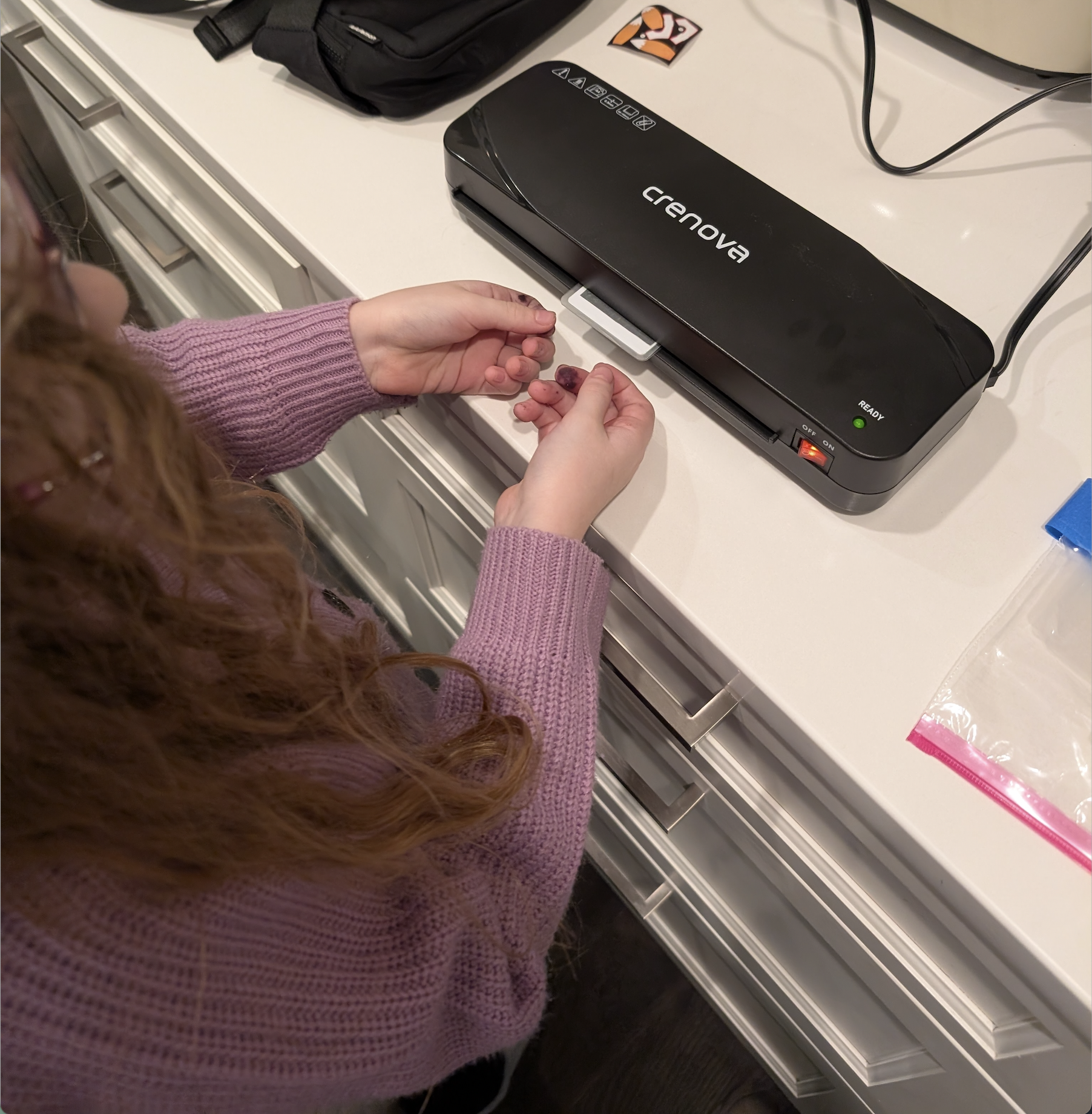 My daughter Emma is showing how we lamindate a movie card