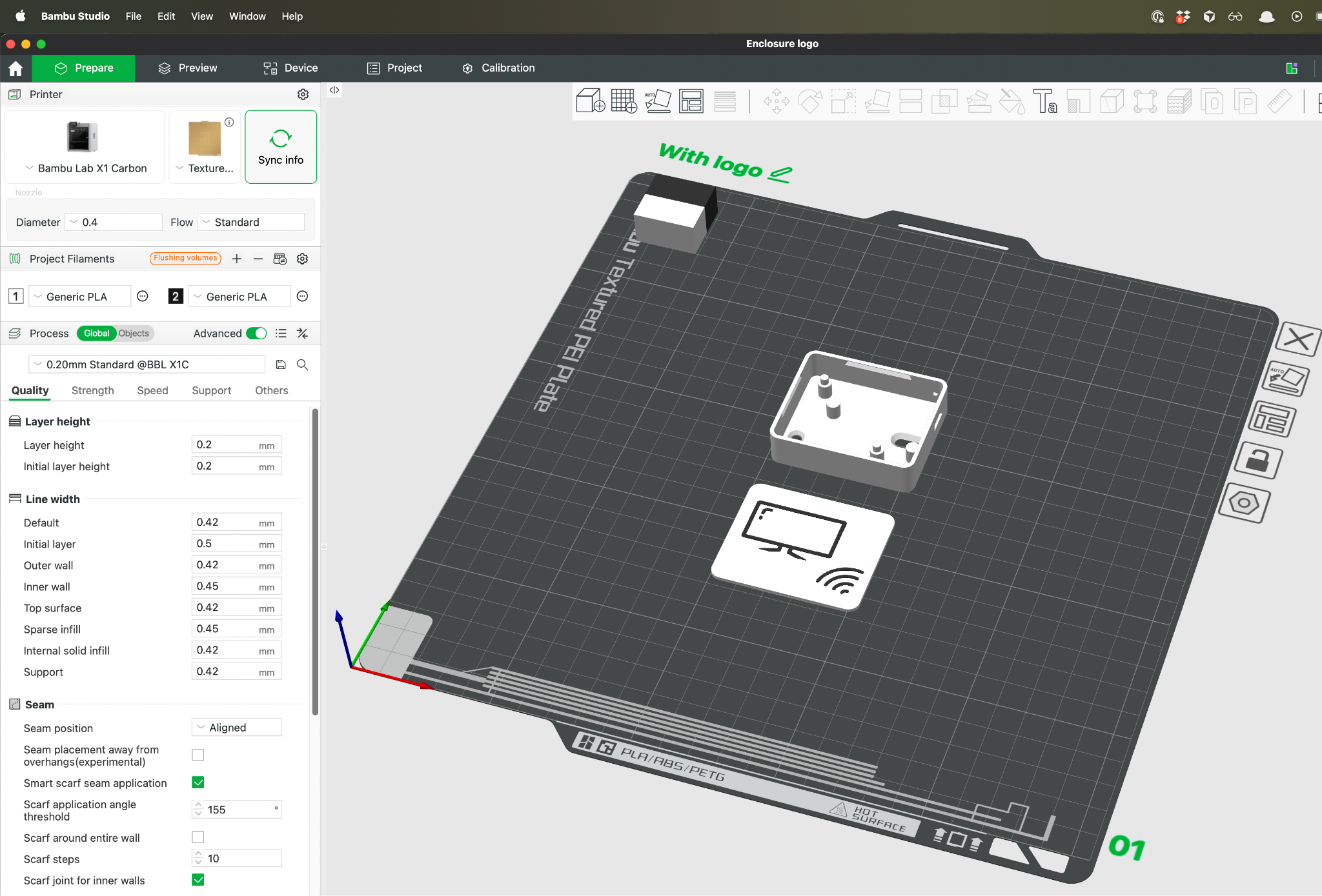 Desgining a 3D printed enclosure with a custom CardFlix logo on the BambuLab Slicer