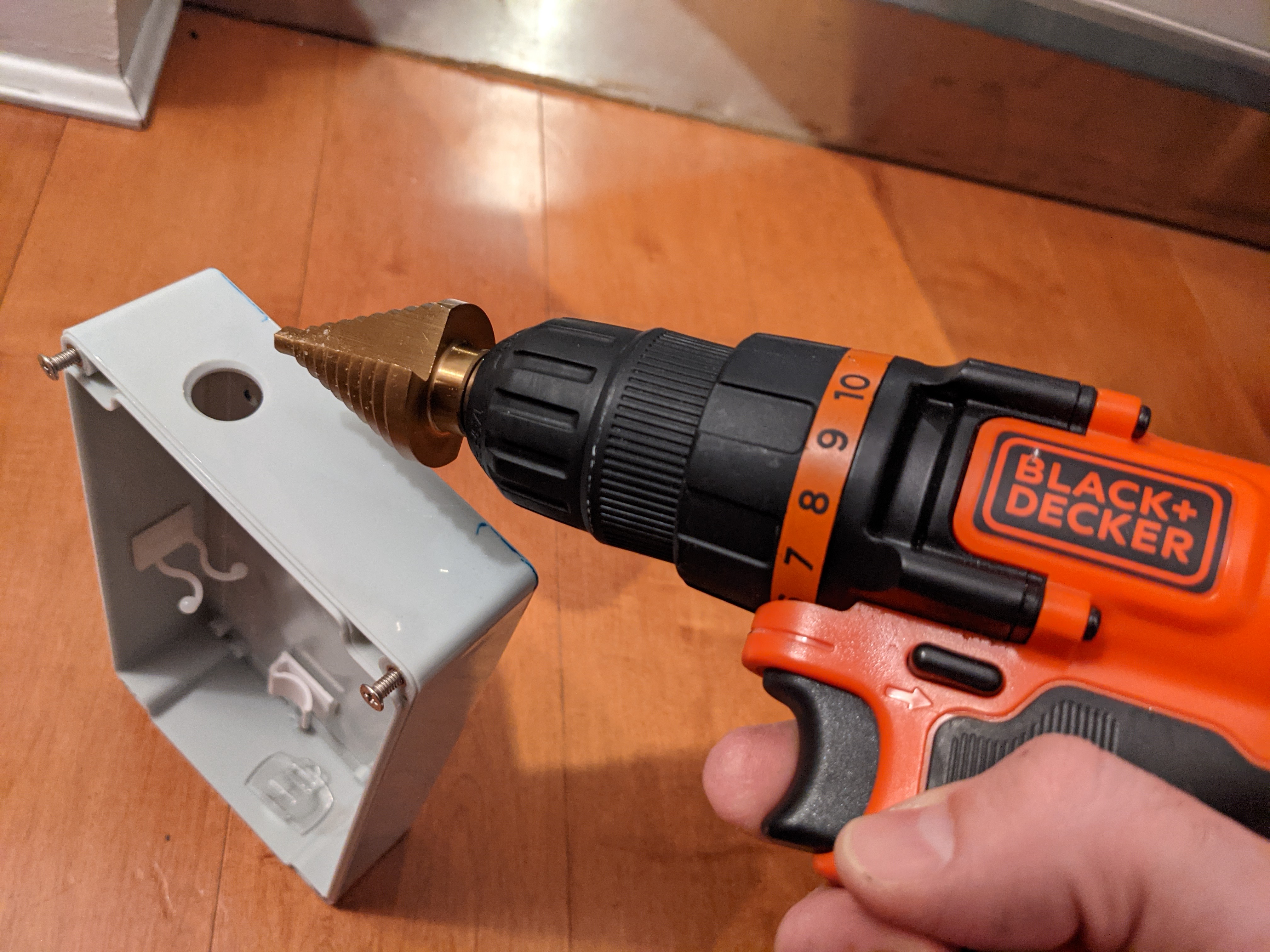 There was a lot of drilling in this project, and I learned a lot about types of surfaces and drills, but I think the highlight is getting to know the Step Drill for drilling perfect round holes in plastic boxes. I found out about this awesome drill bit after spending way too much time drilling holes in the switch box, for inserting the 2 up/down buttons. The Step drill can make the same holes in seconds, and perfectly round too. I think it’s a must for projects like this.