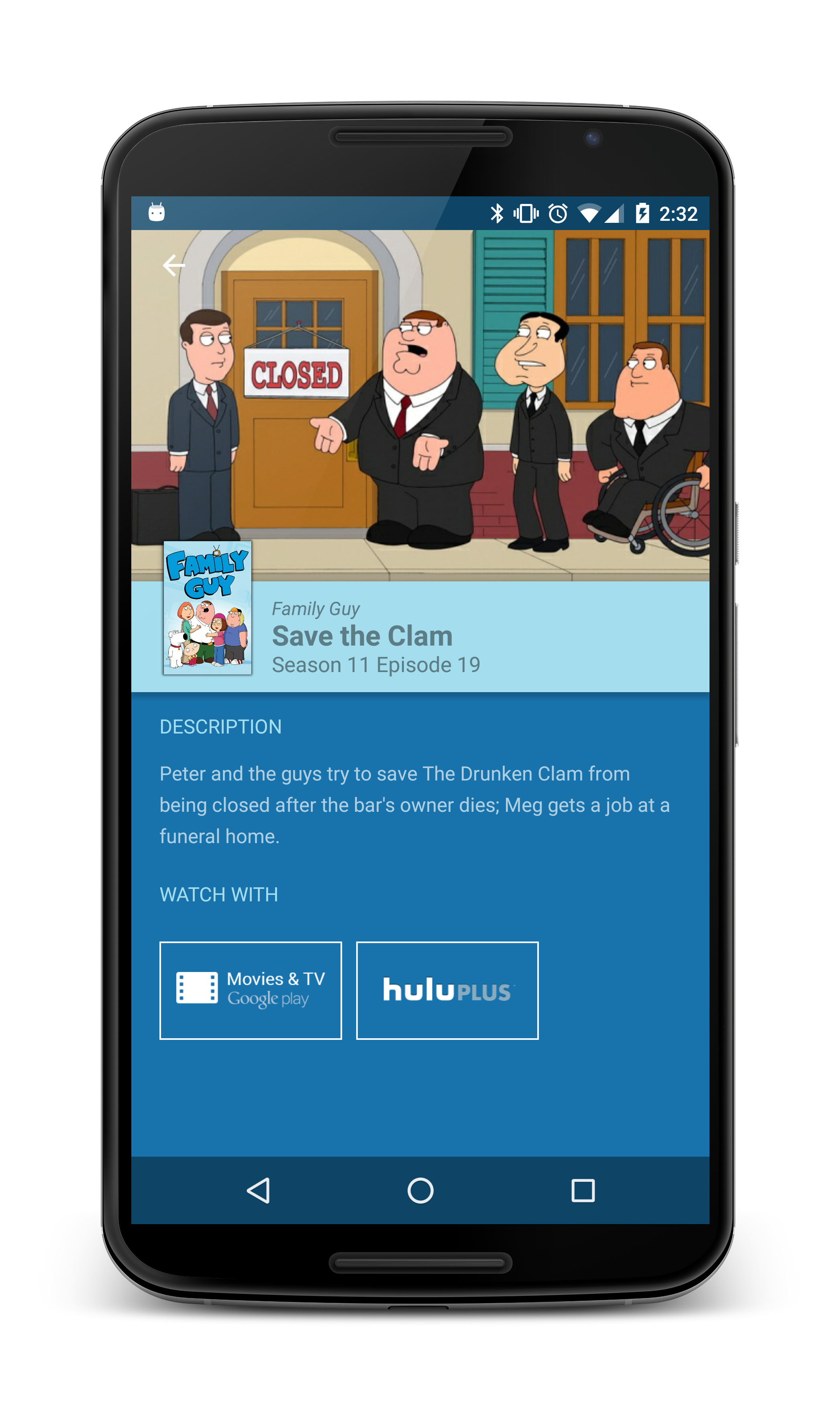 To watch it, click on the streaming service button. That’s a direct link to play the episode on that app. You can later cast it to your TV, if you’d like.