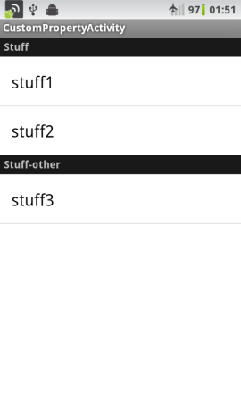 And now you have a pretty and customized PreferenceActivity! I’m afraid I wasn’t completely honest with you, the Properties in the screenshots are also customized (The default text color is white, how else could you see it on top a white background?!), but I used the same technique as for the PreferenceCategory. The full source code is in my github repository.