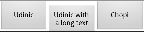 I didn’t intend to make any complex layout, just a simple LinearLayout with 3 buttons. I wanted the buttons to be even by size, take all the space they can have and center the text inside of them. Sounds simple, right? I wrote the following layout: